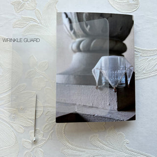 linen duster, wrinkle guard, decorative pin, mini brochure